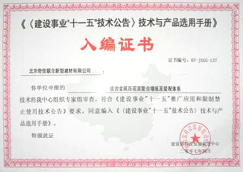 - 2008年被選入“國(guó)家康居示范工程選用部品與產(chǎn)品”